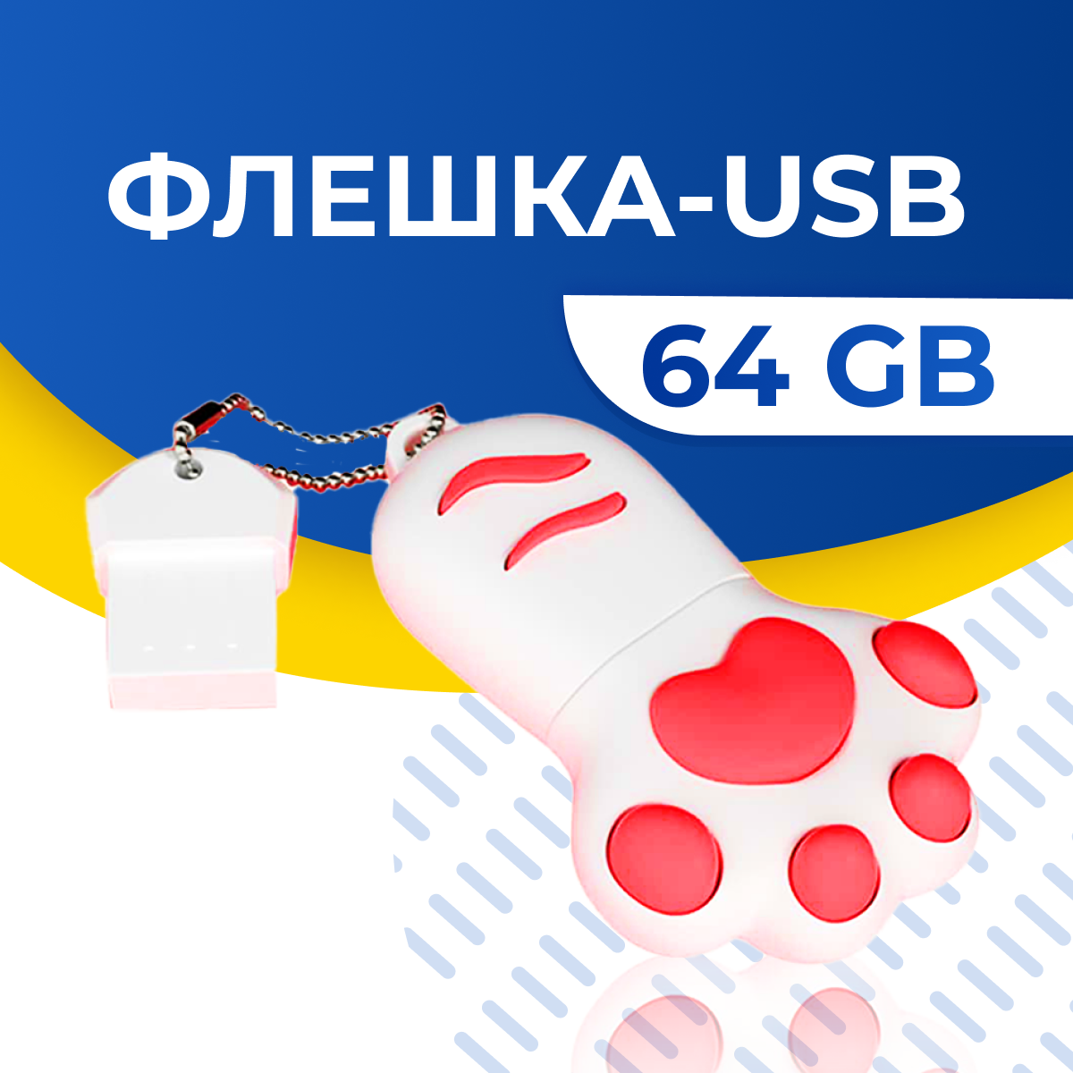 Купить USB Флешка / Оригинальная подарочная флешка USB 64GB / Флеш память ЮСБ 64 ГБ / Внешний накопитель USB Flash Drive (Лапка белая)