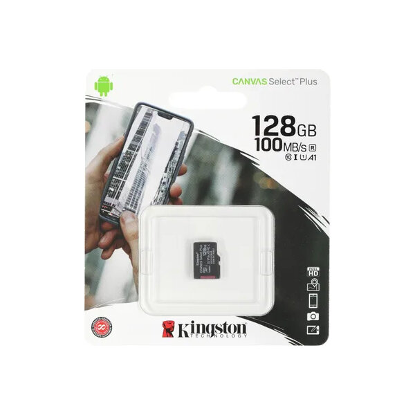 Внешний носитель информации microSDXC Kingston 128Gb Canvas Select Plus, Class10, UHS-I (U1) V10 A1, R100/W85 Mb/s, w/o adapter ( SDCS2/128GBSP )