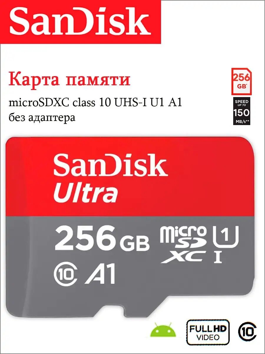 Карта памяти SanDisk microSDXC 256 ГБ Ultra Class 10, UHS-I, U1, A1 (150 Mb/s)