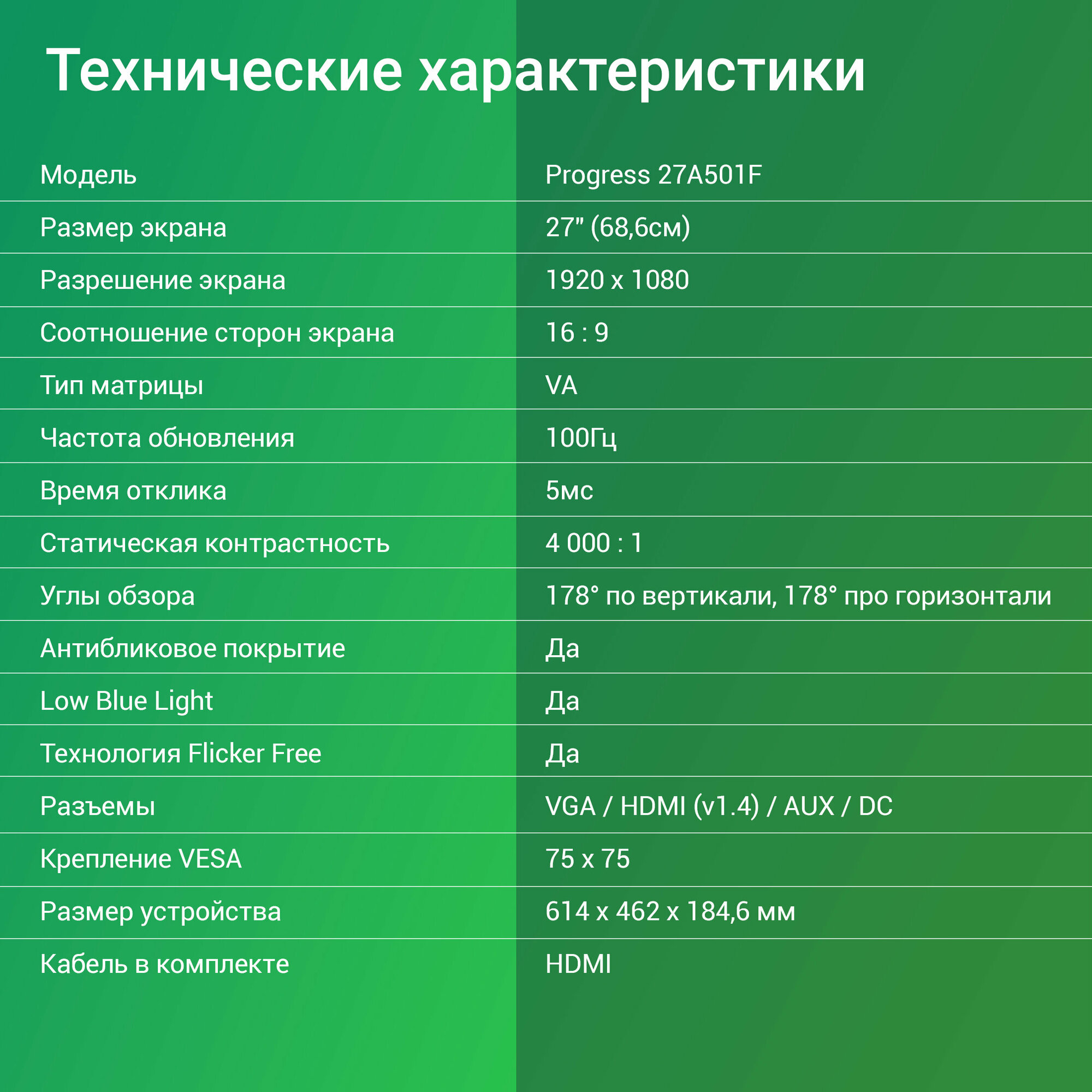 Монитор ЖК Digma Progress 27A501F 27" Black 5ms HDMI, VGA интересное: