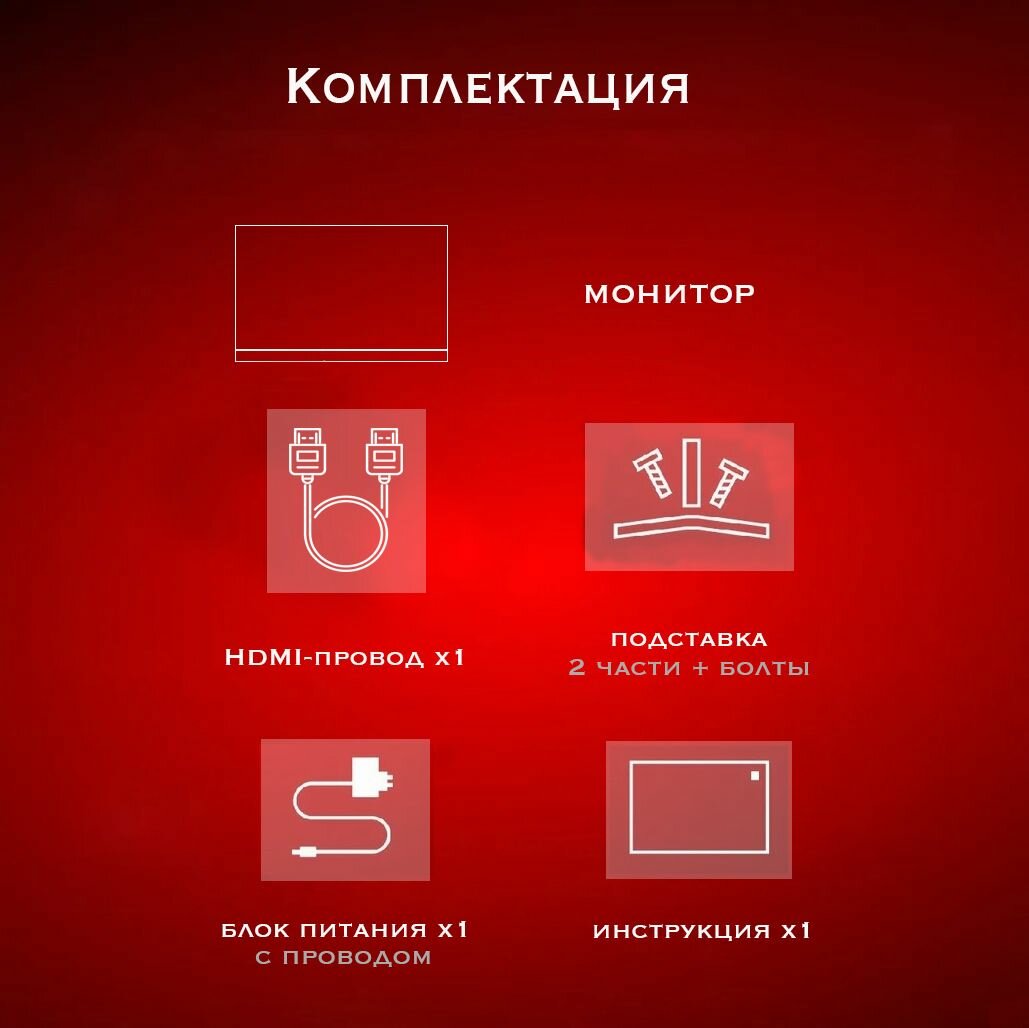 | Подробная комплектация | Монитор, блок питания, документация, кабель питания. |