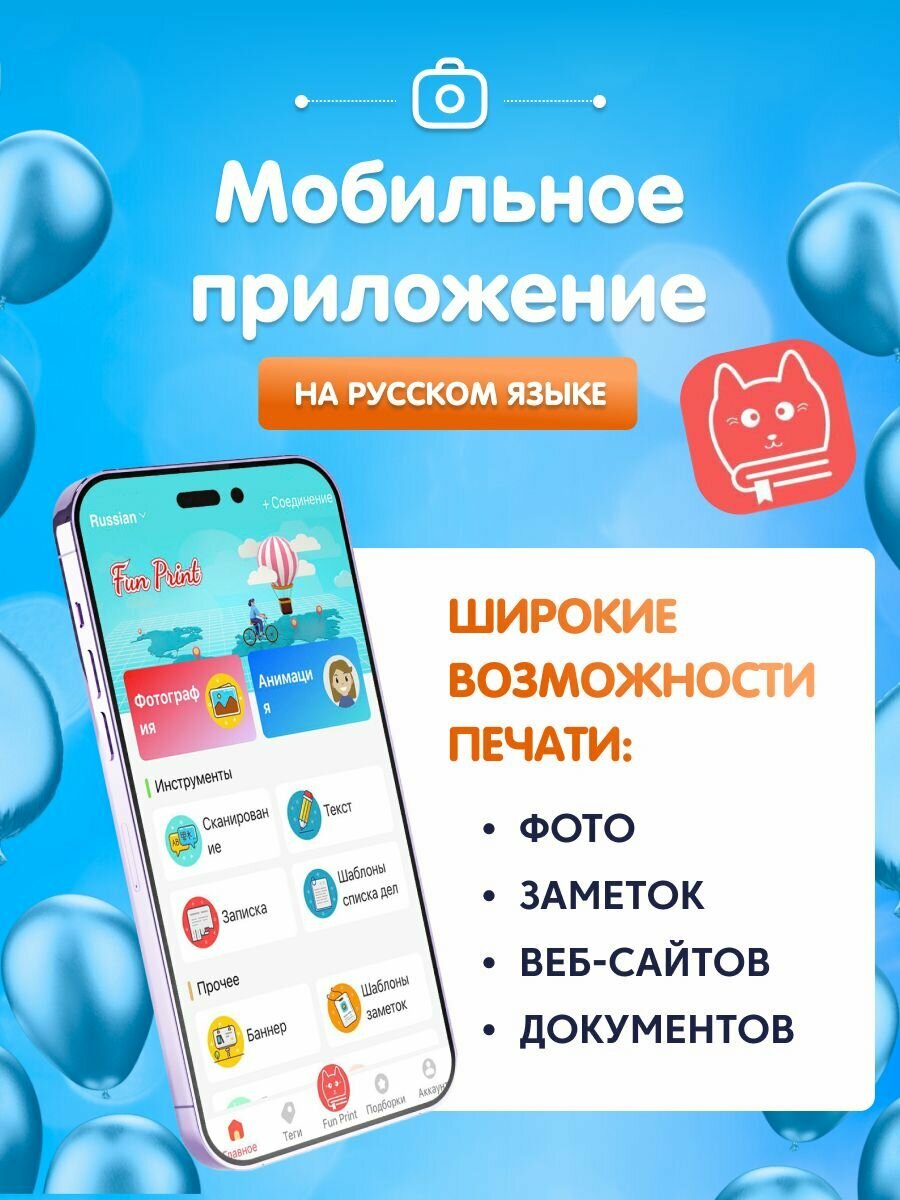 Портативный мини принтер для телефона Kid Joy, 200DPI, Bluetooth 5.1, APP (M5) Blue интересное: