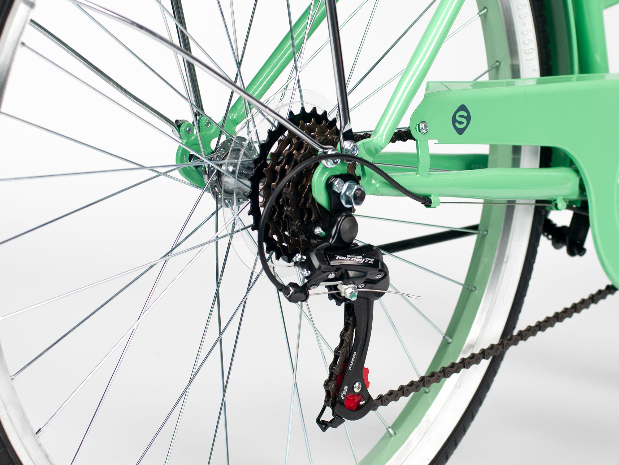 Купить Велосипед городской SITIS MIRAGE SMRG26 26" (2024), ригид, взрослый, женский, стальная рама, оборудование Shimano Tourney, 7 скоростей, ободные тормоза, цвет Light-Green-Black, зеленый/черный цвет, размер рамы 17", для роста 170-180 см