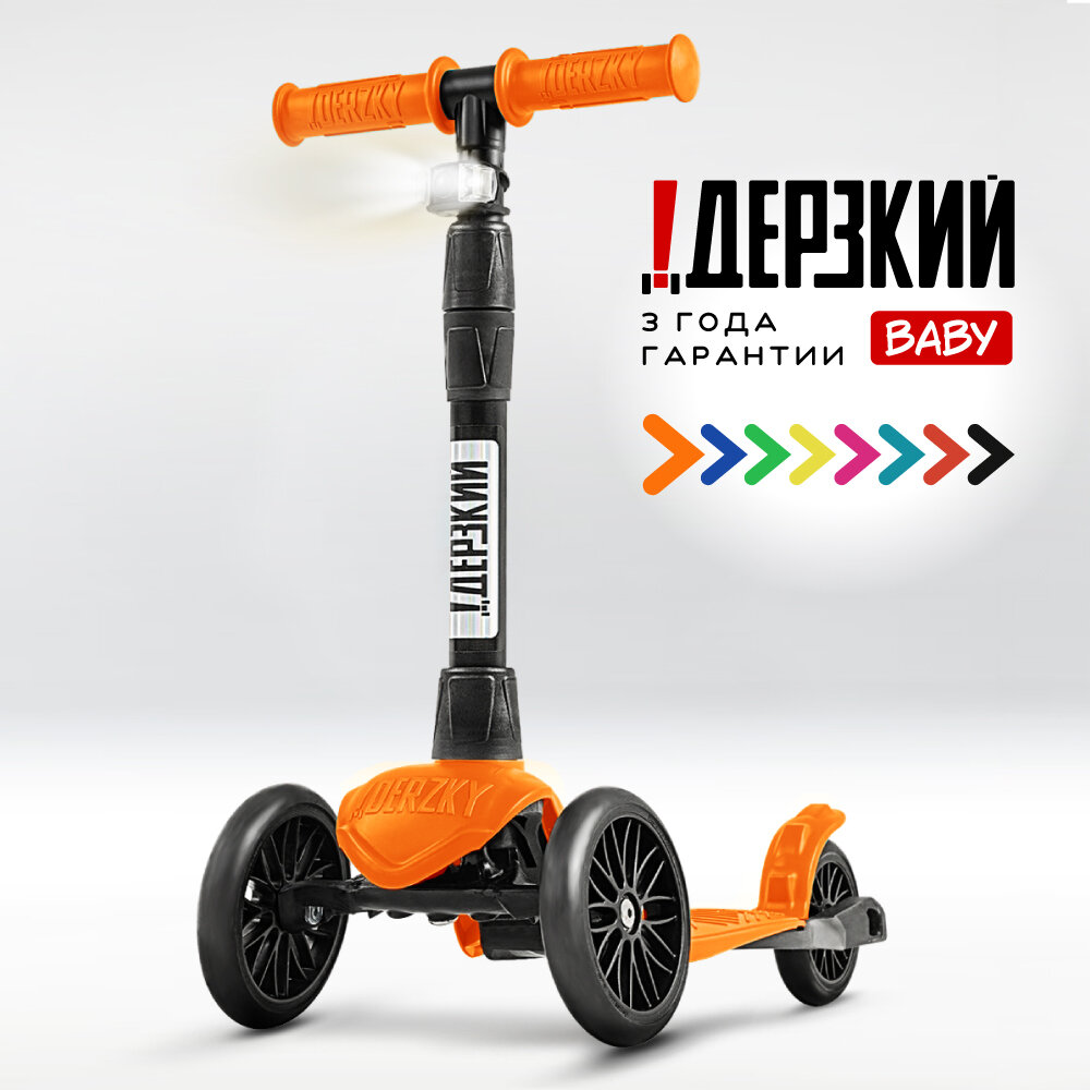Самокат детский трехколесный 0-5 лет !Дерзкий Baby бесшумное шасси Super CHASSIS 3-колесный 3 года гарантии, оранжевый