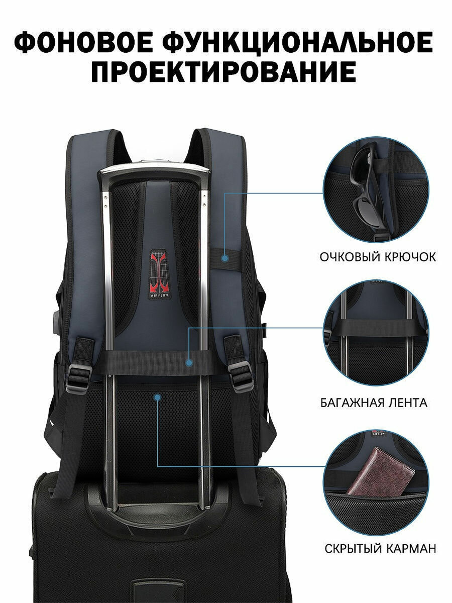 | Конструктивные особенности | USB-выход / антивор / боковые карманы / вентилируемые лямки / вентиляция спины / внутренний карман / перегородка в основном отделении / ремешок крепления ноутбука |