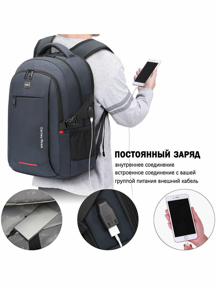 Рюкзак мужской USB спортивный Carney Road с USB-выходом, антивор и боковыми карманами