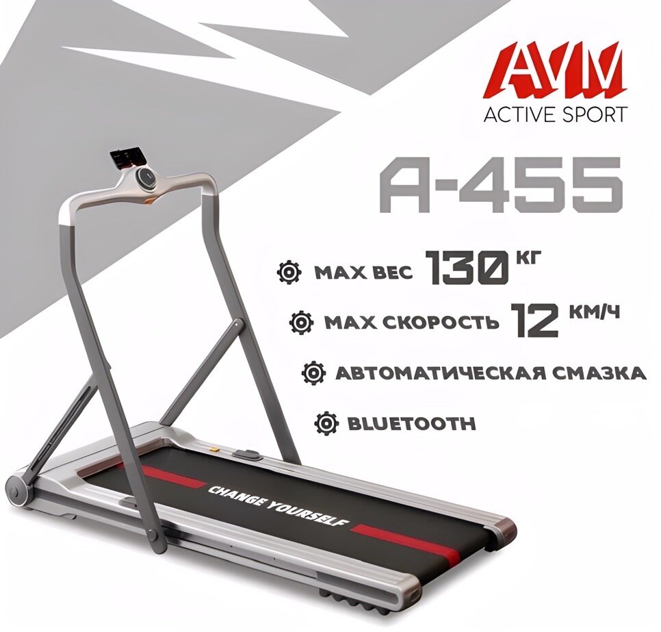 Беговая дорожка AVM A-455 для дома / Серебристая / Электрическая / Складная / Ультракомпактная / С поручнем и без / До 130 кг