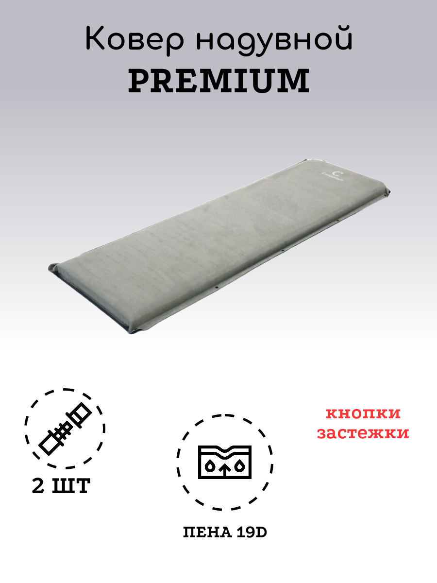 | Дополнительная информация | В комплекте коврик самонадувающийся Premium 188*59*10 см; резинка-стяжка 2 шт; виниловая заплатка 10*10 см 1шт |