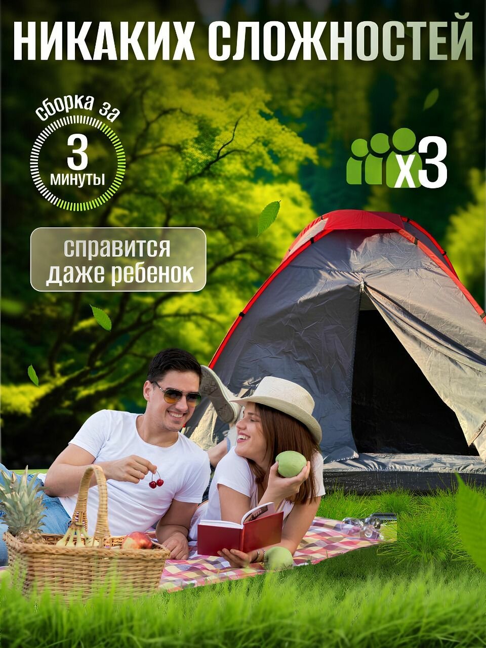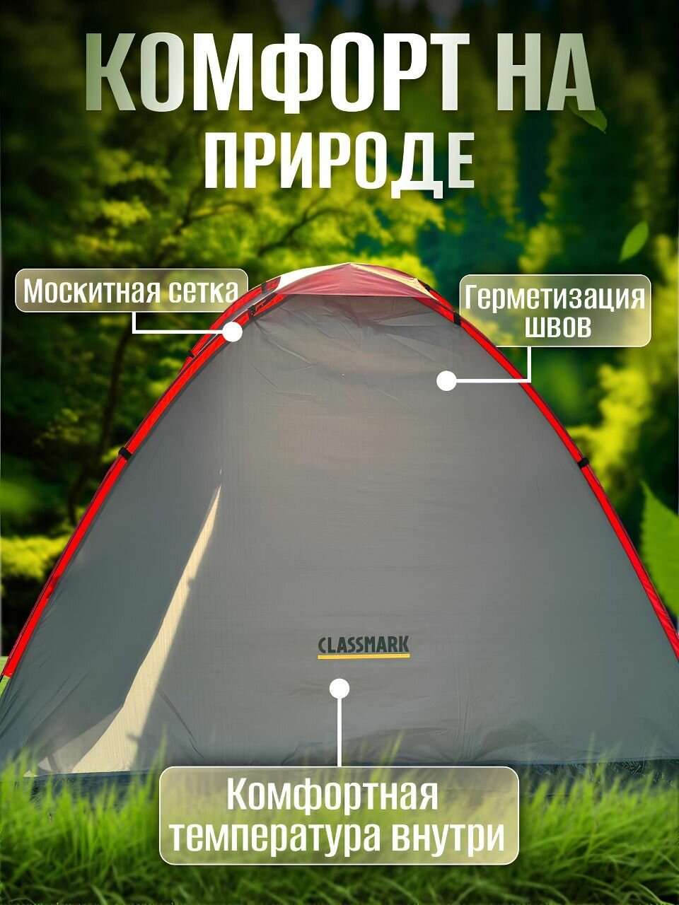 Купить Палатка туристическая 3 местная Classmark для туризма и отдыха на природе, для похода и кемпинга, с москитной сеткой, водонепроницаемая, серый и красный