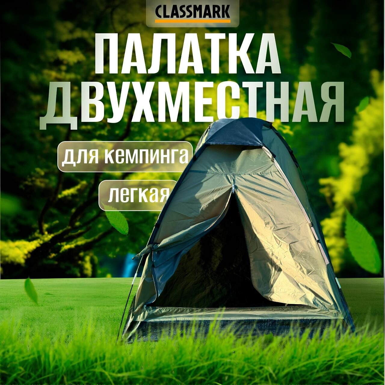Купить Палатка туристическая 2 местная Classmark для туризма и отдыха на природе, для похода и кемпинга, с москитной сеткой, водонепроницаемая, темно-зеленый