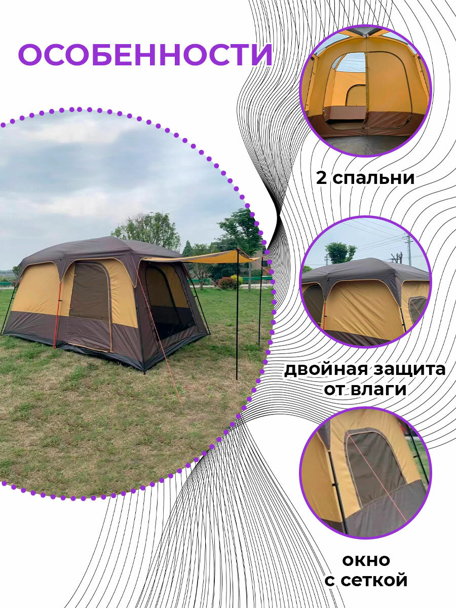 Палатка туристическая 4~8 местная с тамбуром кемпинговая летняя для рыбалки MIR-1610