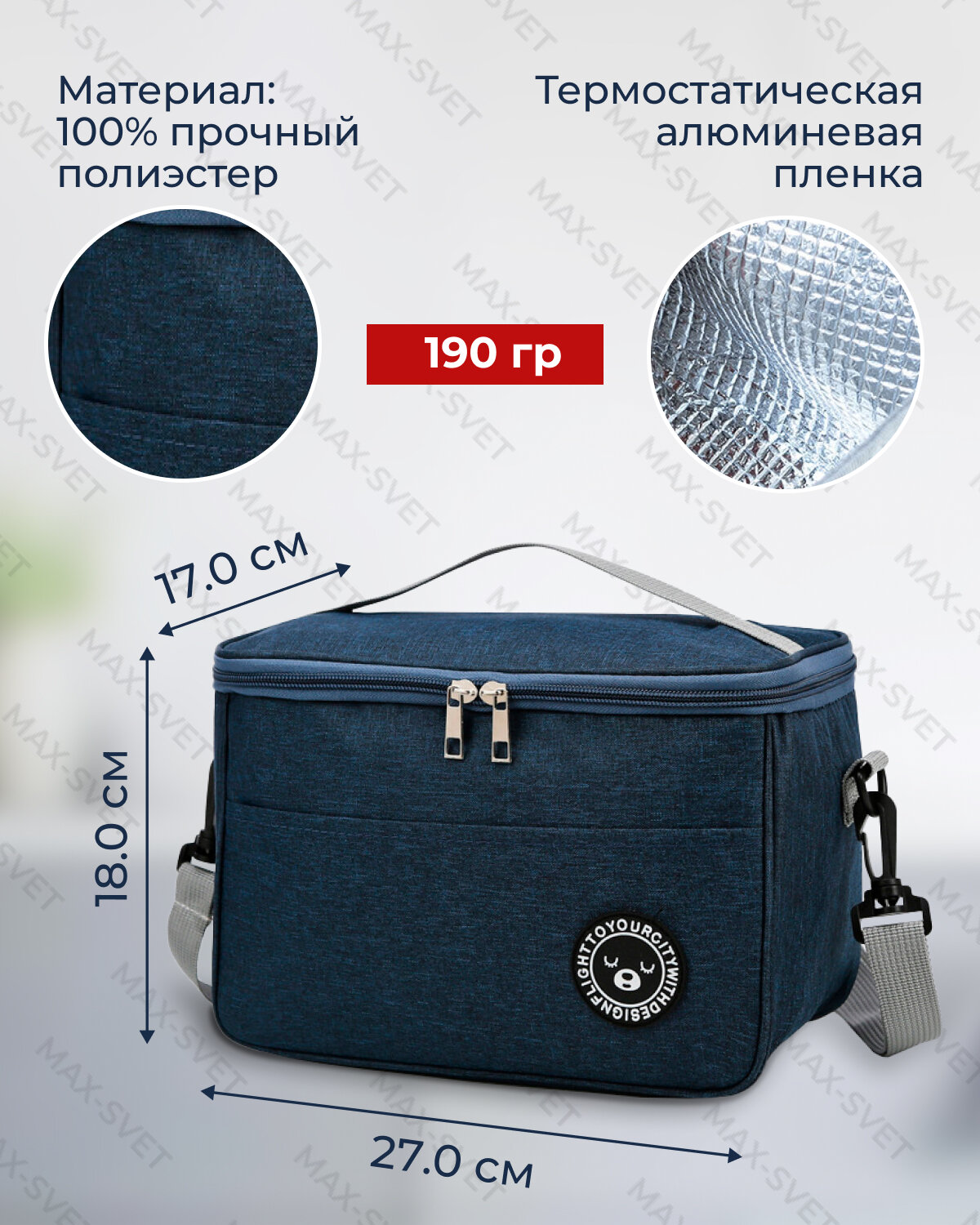 Сумка холодильник S-MAX объемом 18 литров со съемным плечевым ремнем, водонепроницаемыми швами для сохранения продуктов в тепле или холоде, синяя