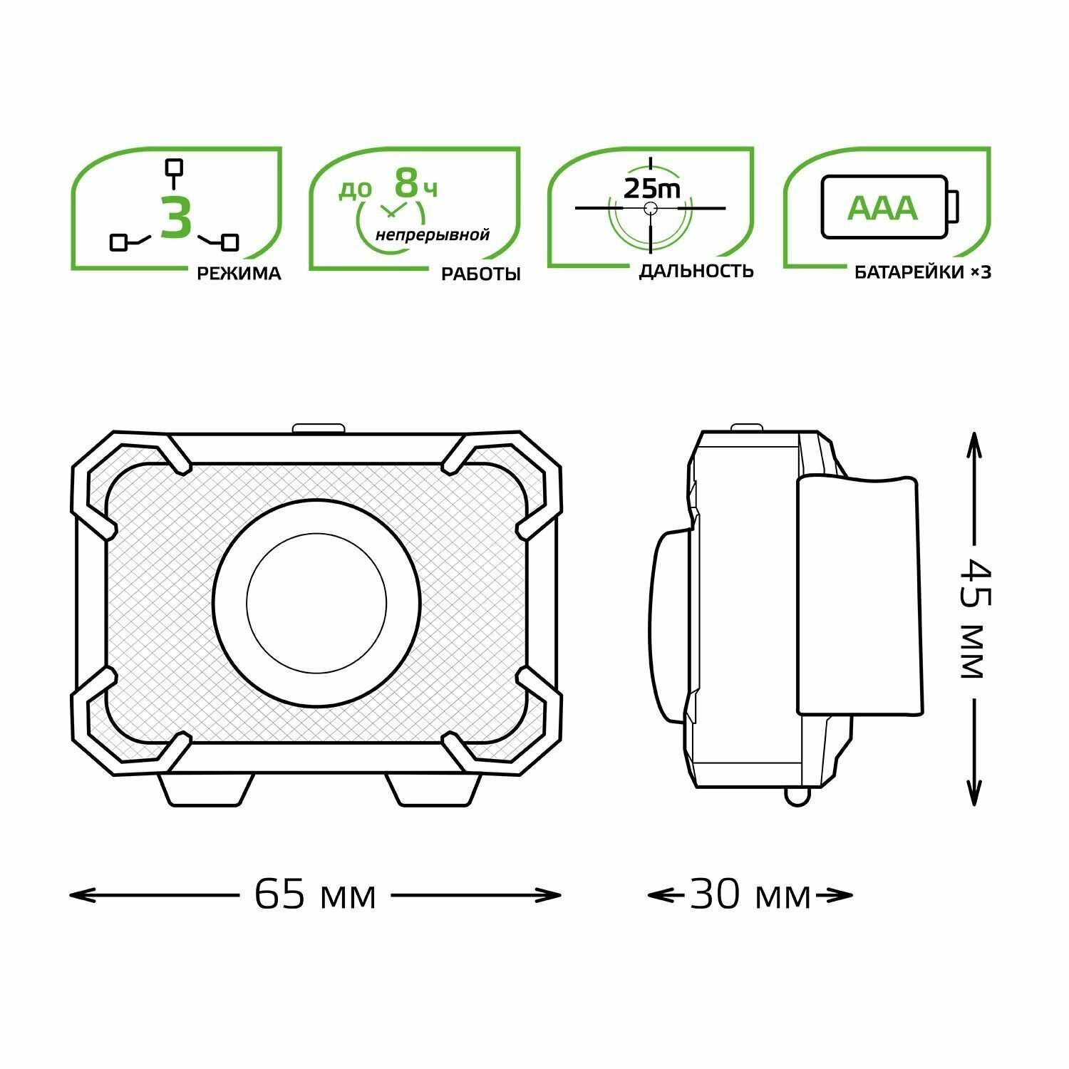 | Дополнительная информация | тип батарей: AAA; количество батарей: 3; количество режимов работы: 3 |