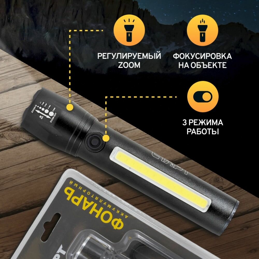 Ручной фонарик аккумуляторный светодиодный старт 7Вт , 3 режима работы