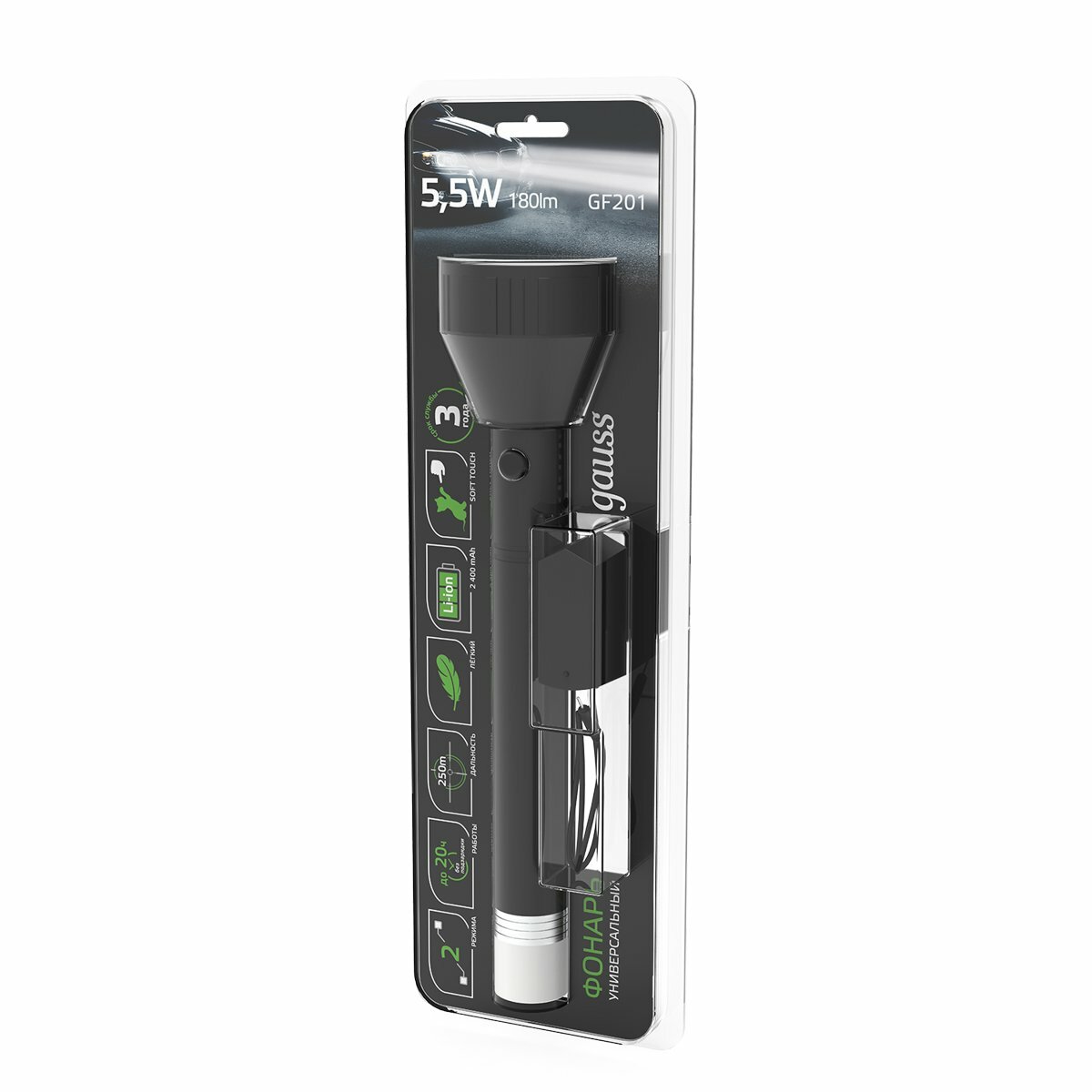 Фонарь ручной Gauss GFL201, черный