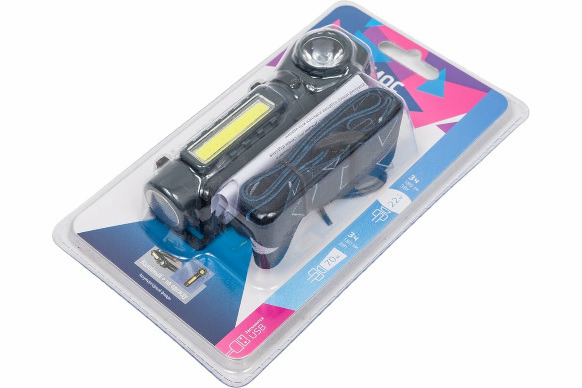 Фонарь аккумуляторный налобный 3Вт LED+3Вт COB LED с коллиматорной линзой Li-ion 18650 1200мА.ч корпус ABS-пластик USB-шнур type C магнит на корпусе зажим для крепления регулируемый эласт. ремешок космос KOC508Lit