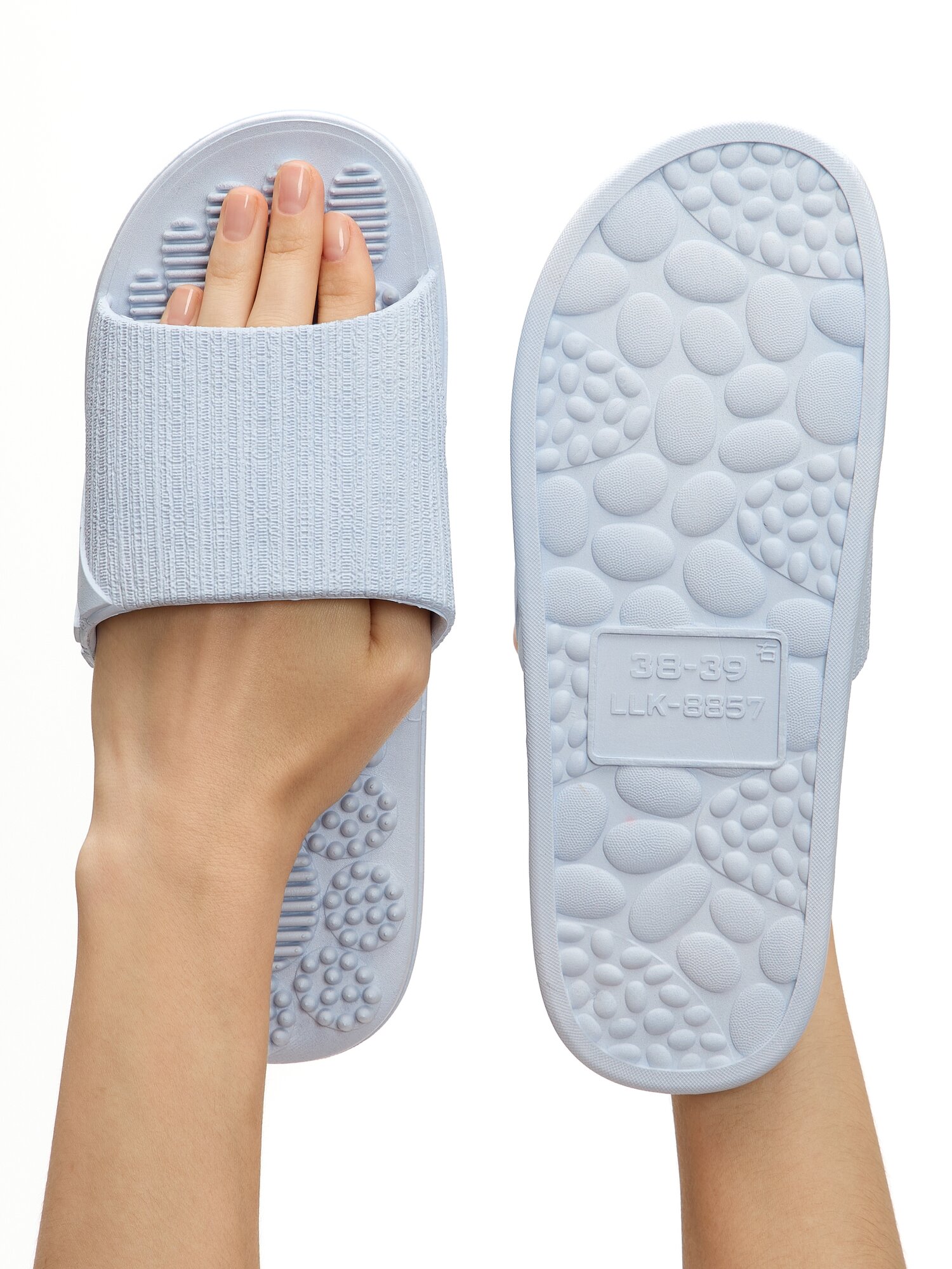 Массажные тапочки акупунктурные Карта Стопы, шиацу, светло-голубые, 38-39