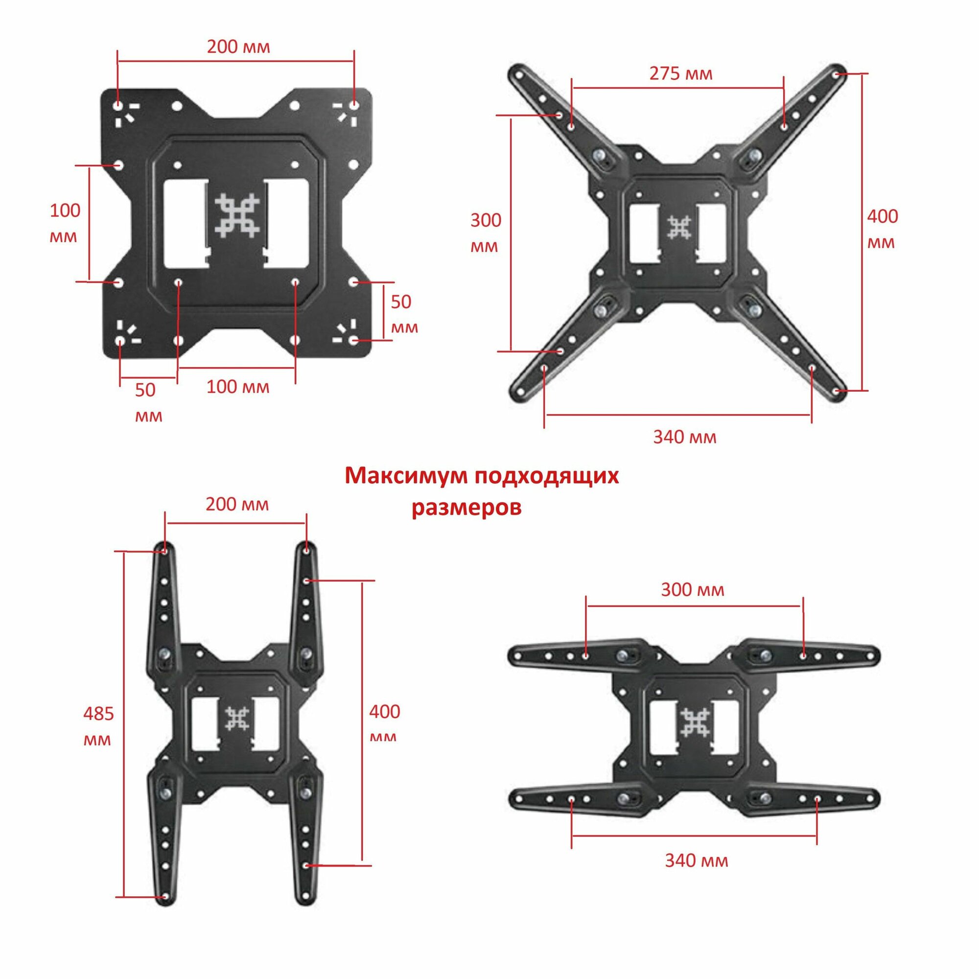 | Стандарт Vesa | 100x100 мм / 100x200 мм / 200x100 мм / 200x200 мм / 200x300 мм / 200x400 мм / 300x200 мм / 300x300 мм / 400x200 мм / 400x400 мм |
