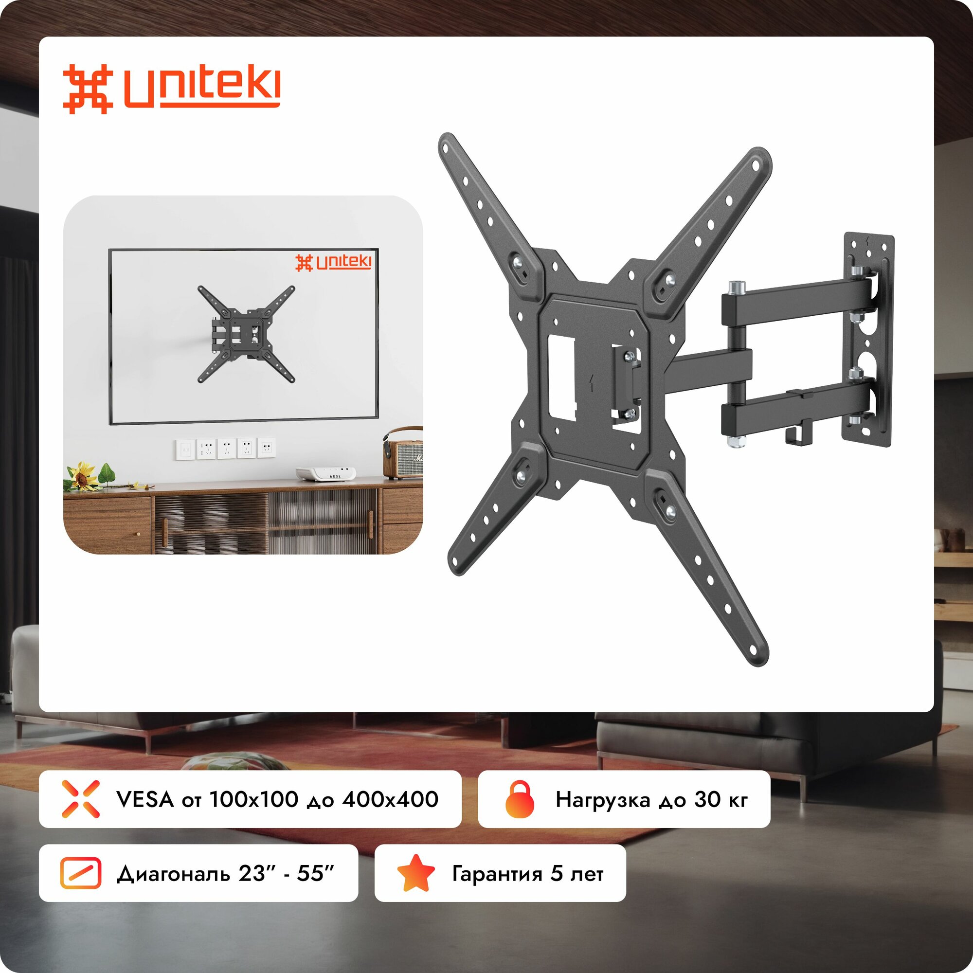 Кронштейн для телевизора на стену выдвижной, наклонно поворотный UNITEKI FM1504B черный диагональ 23-55 дюймов