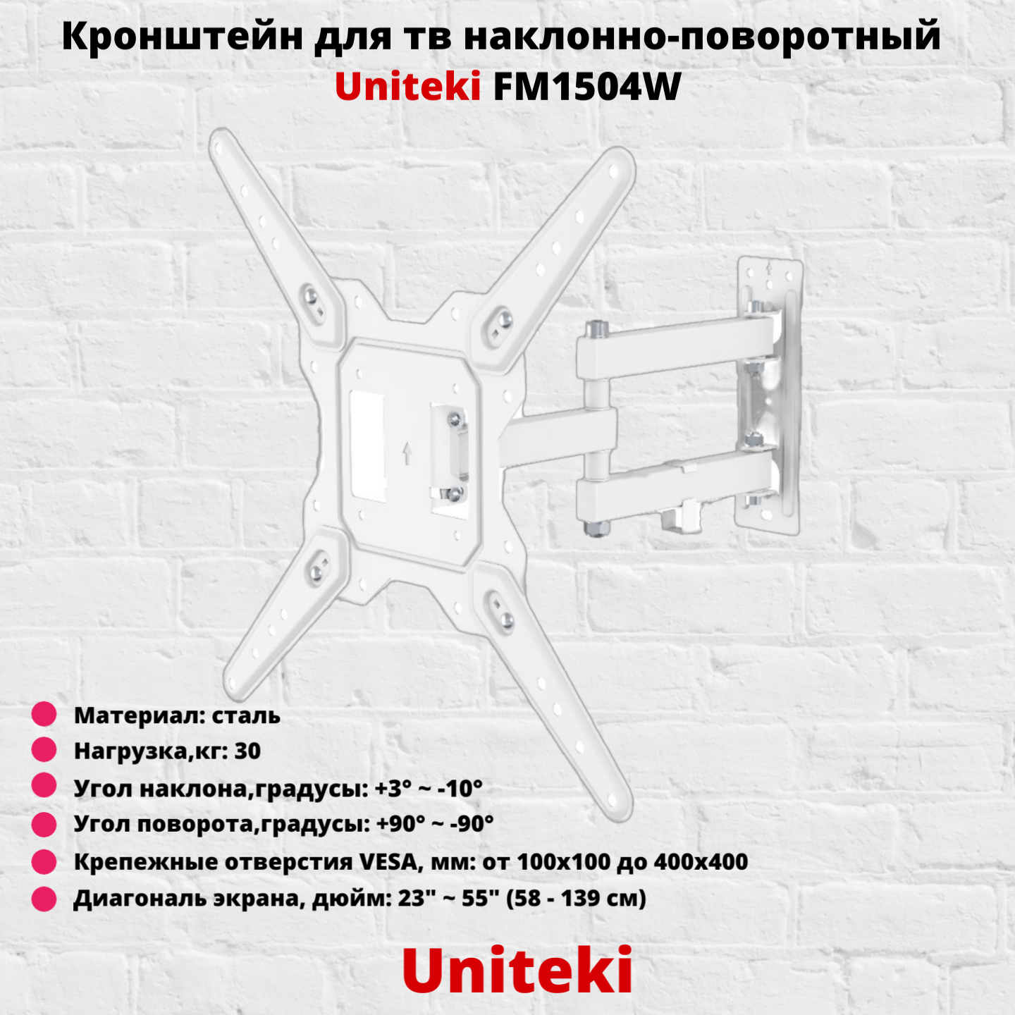 Кронштейн для телевизора на стену наклонно-поворотный с диагональю от 23"до 55" UniTeki FM1504B,черный