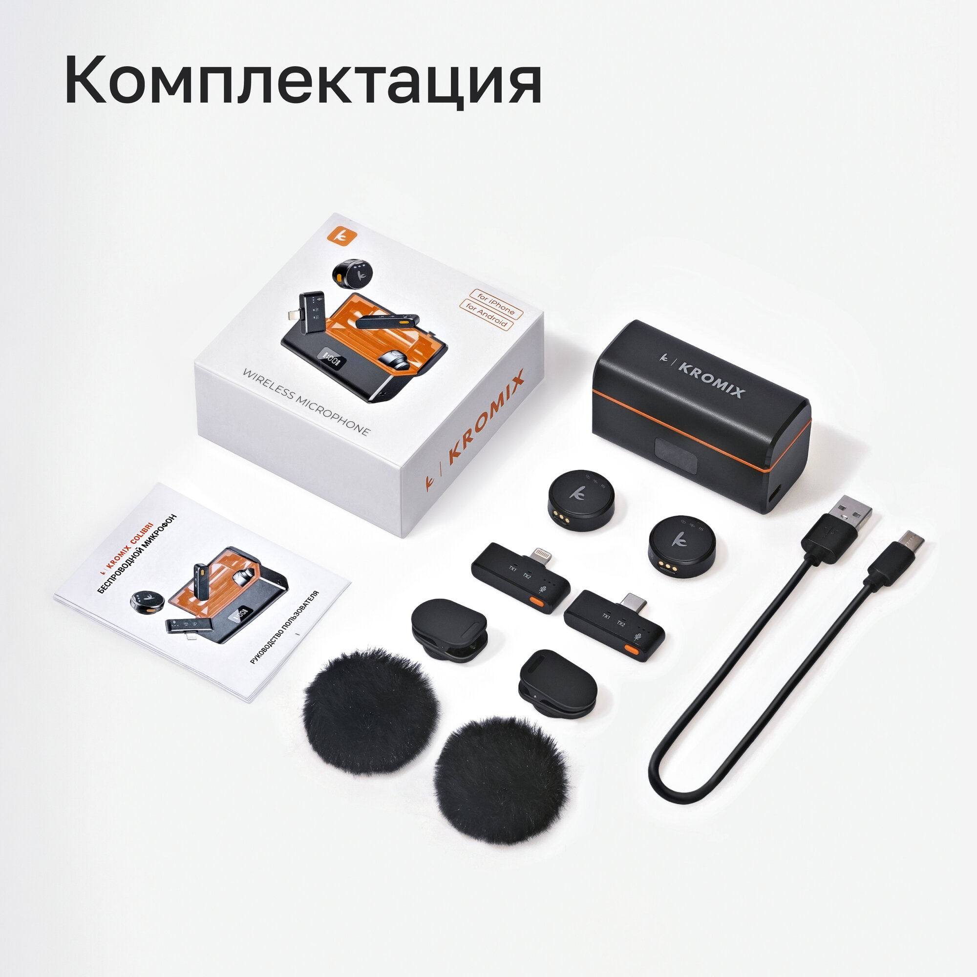 Микрофон петличка беспроводная Kromix Colibri , с шумоподавлением, Type-C, Lightning интересное: