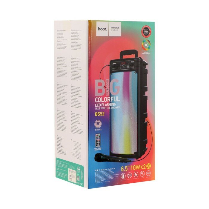 Колонка портативная HOCO BS52 2*10W 2200mAh подсветка, TWS, TF, USB, AUX, FM,ПДУ микрофон (Black)