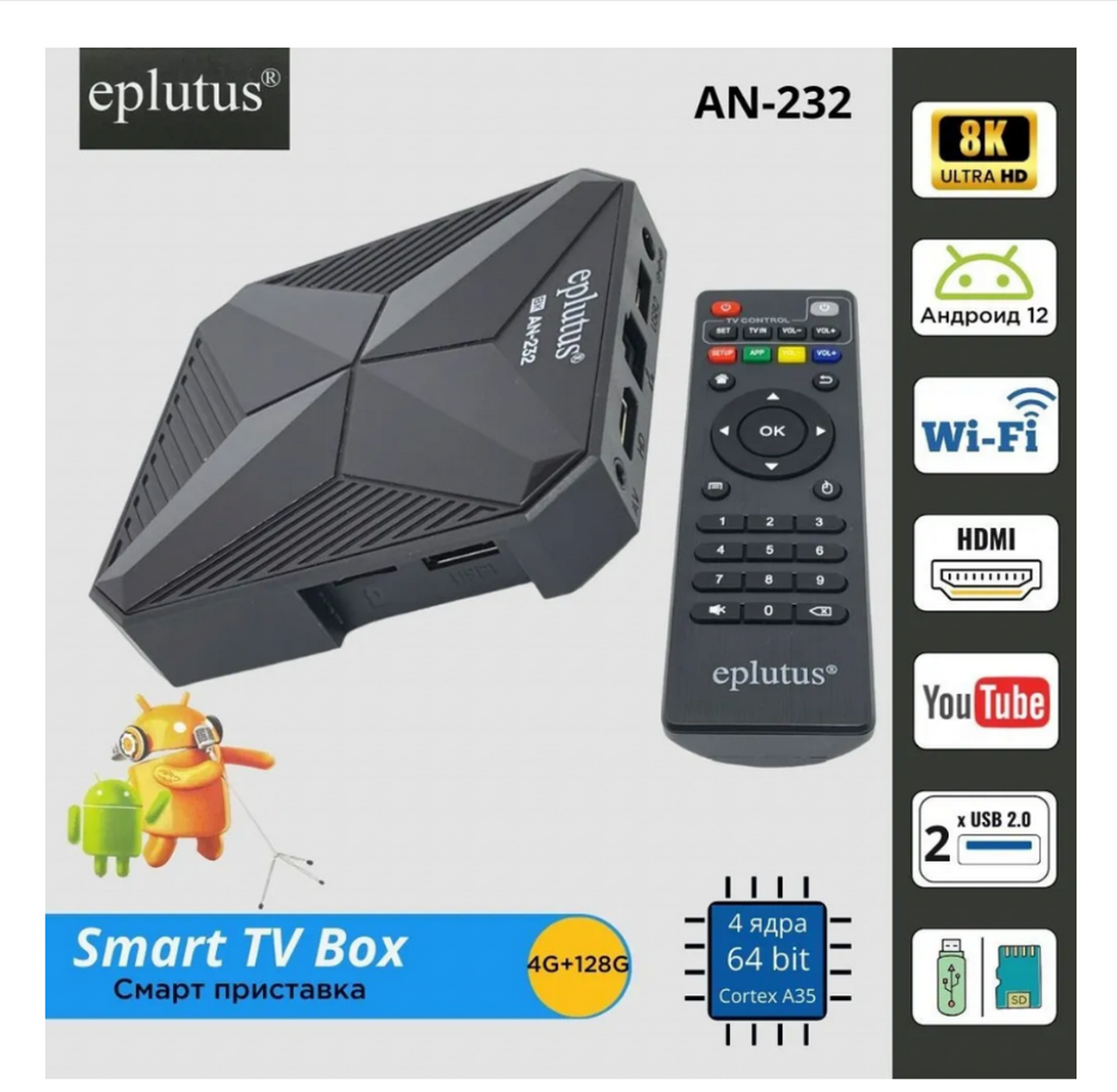 Купить Смарт приставка Smart TV Box Eplutus AN-232 (Android 4+128Гб) (черный)