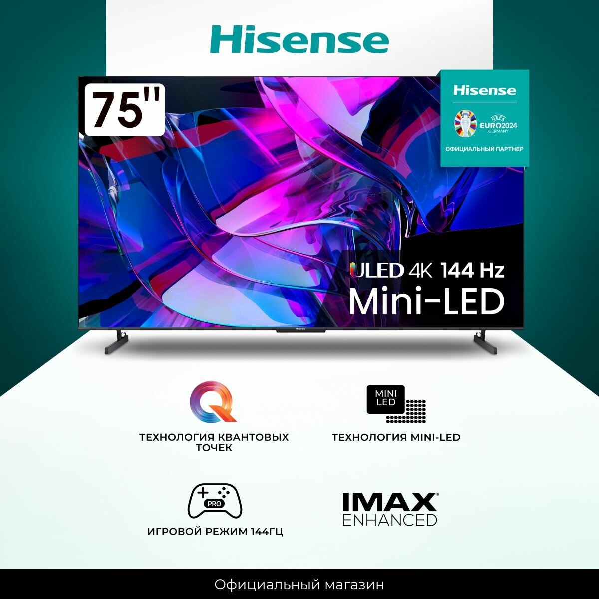 Купить Телевизор Hisense 75U7KQ 75 дюймов Смарт ТВ, голосовое управление, MiniLED 4К UHD, игровой режим 144 Гц