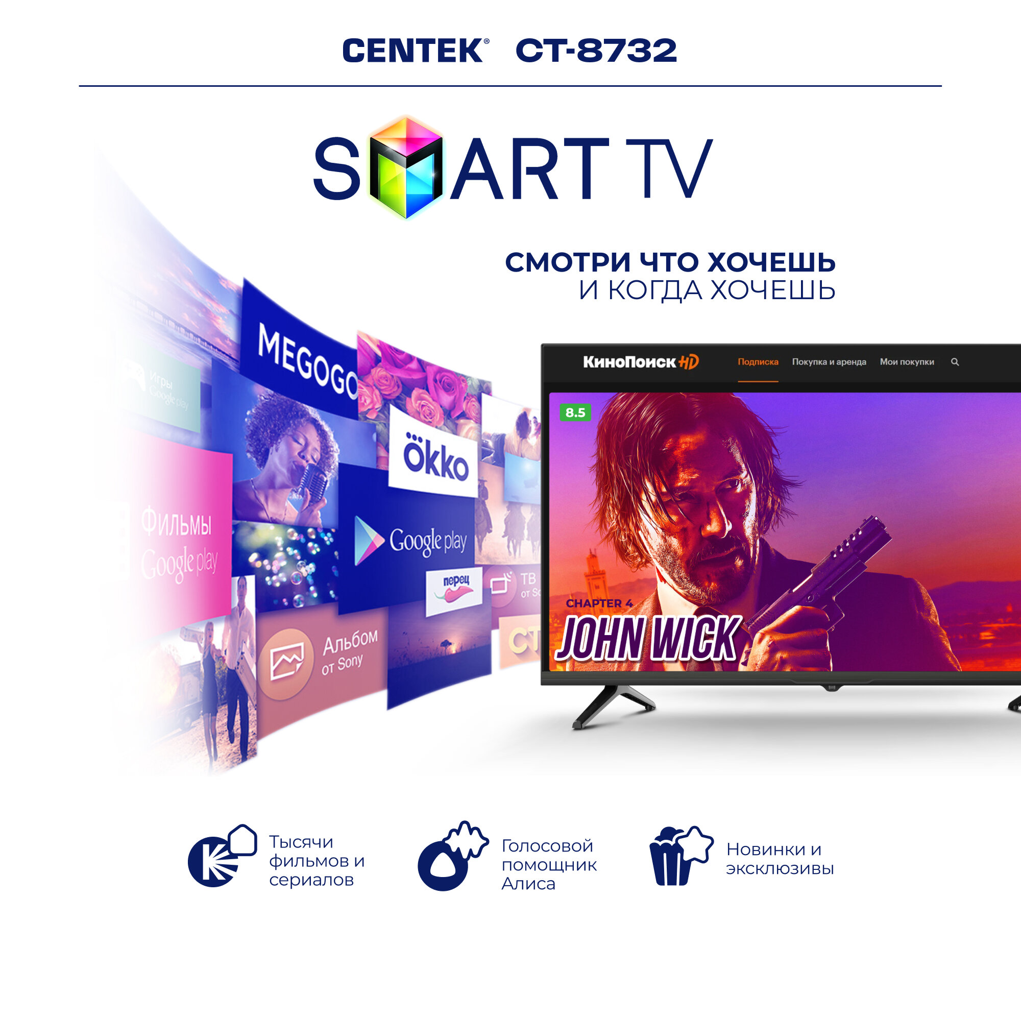 Купить Телевизор Centek CT-8732 SMART, 32 дюйма HD, Wi-Fi, Bluetooth, HDMIx2, USBx1, DVB-T/T2, Яндекс YaOS, Алиса