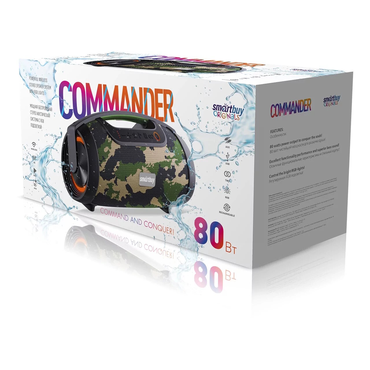 Портативная колонка Smartbuy® COMMANDER, 80Вт, Bluetooth, USB, камо (SBS-5330)
