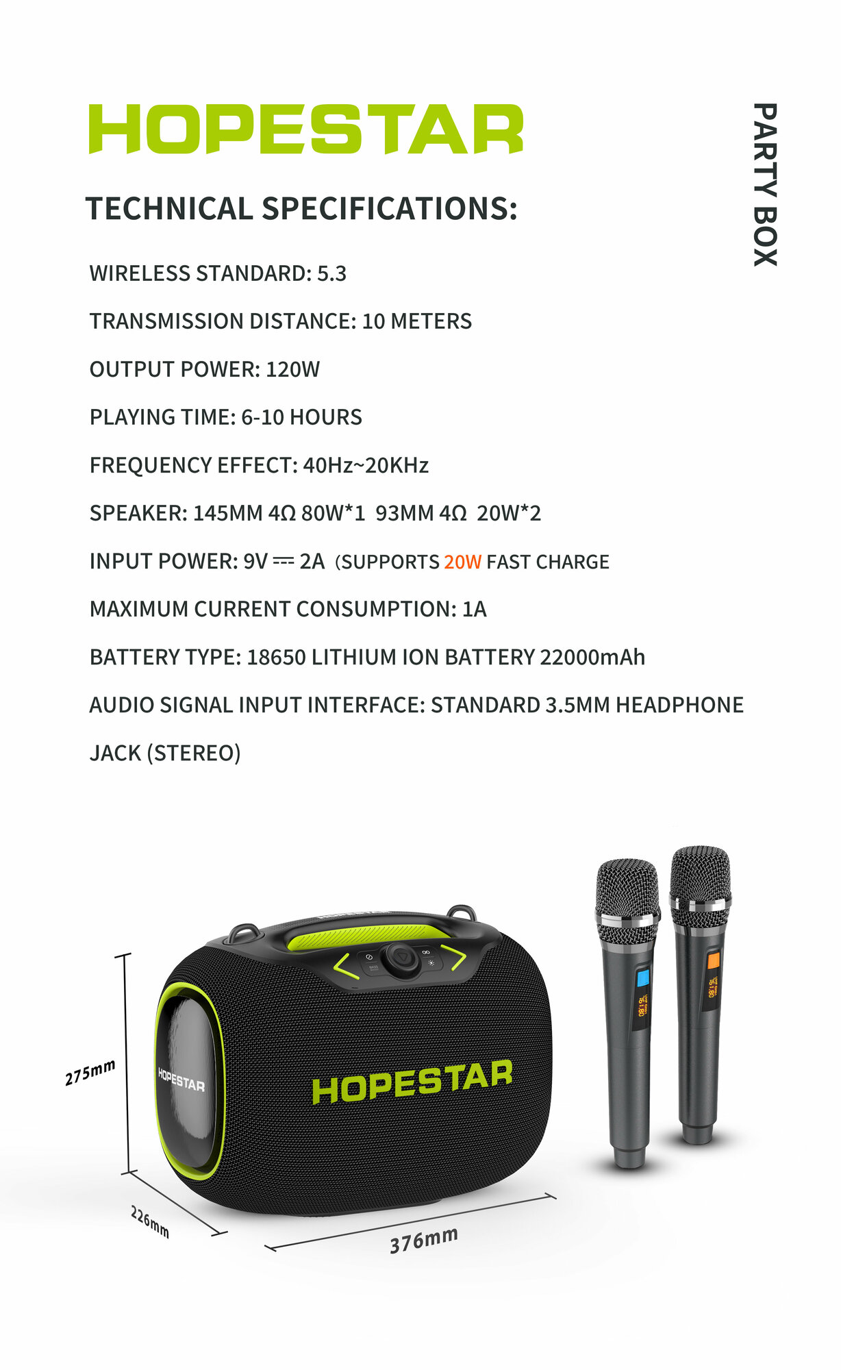 Портативная Bluetooth Колонка Hopestar Party Box Хаки (2 микрофона)