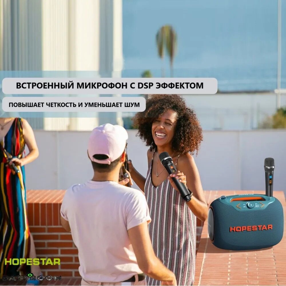 СохранитьПортативная Bluetooth Колонка Hopestar Party Box Синий (2 микрофона) интересное: