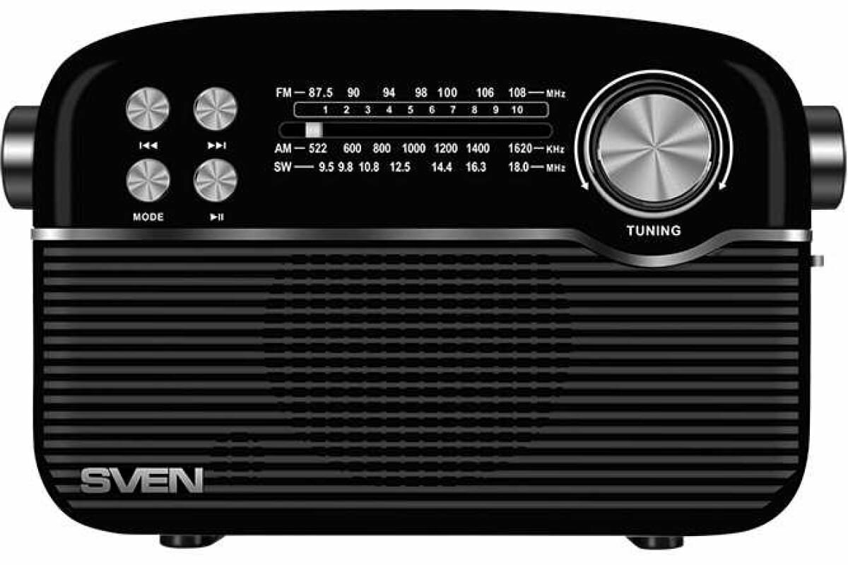 Радиоприёмник SVEN SRP-500 чёрный (3 Вт, FM/AM/SW, USB, microSD, AUX, Bluetooth, 1200 мАч)