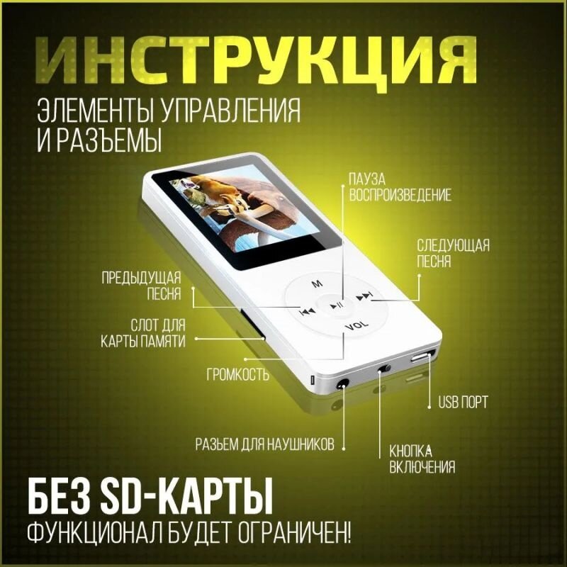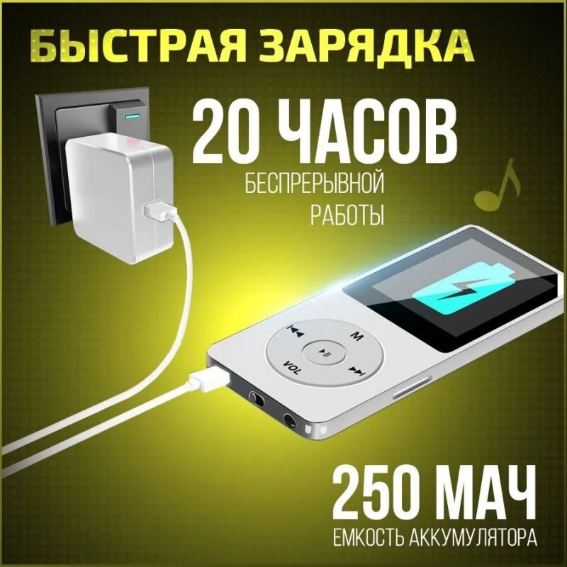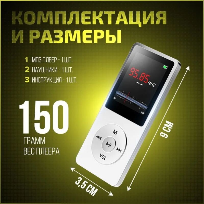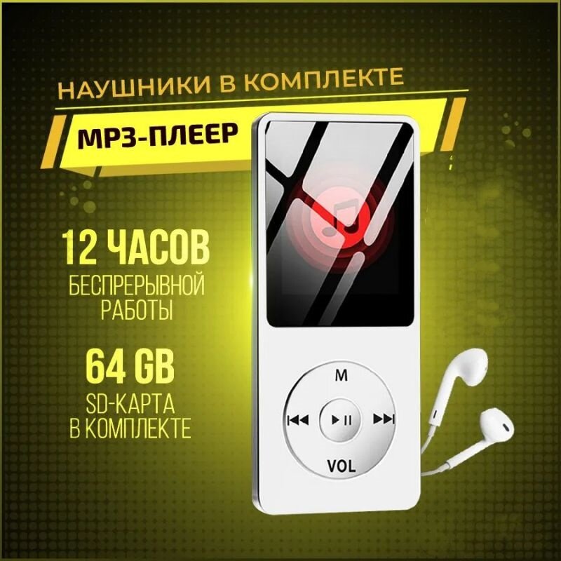 Беспроводной MP3-плеер 64 ГБ с Bluetooth, наушниками, экраном и FM-радио, белый интересное: