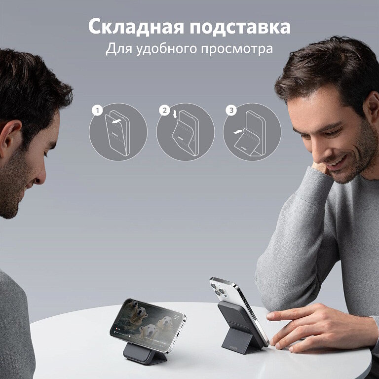 Портативный пауэрбанк Anker MagGo 622 5000mAh, легкий и компактный с подставкой для зарядки на ходу