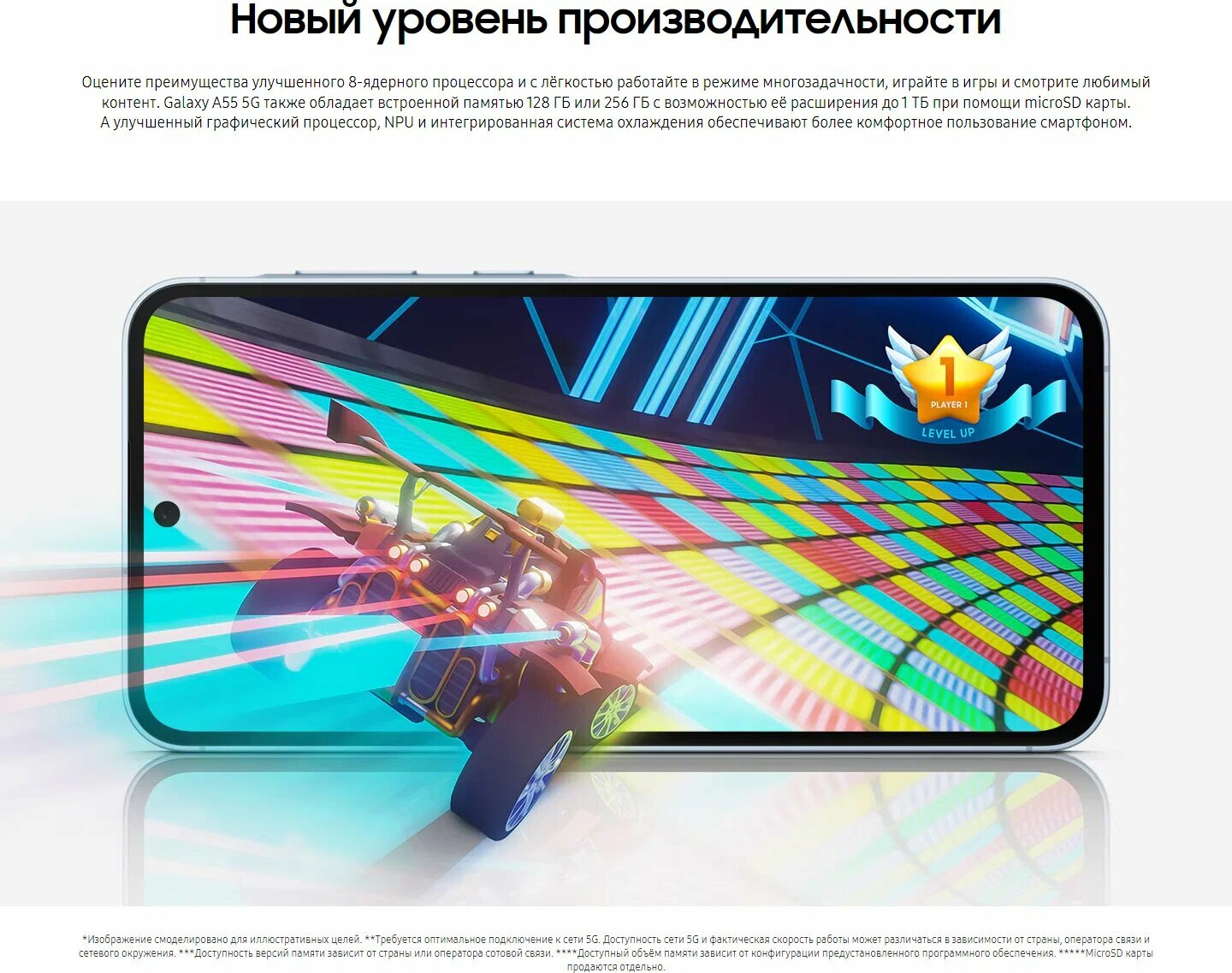 Смартфон Samsung Galaxy A55 5G 8/128 ГБ, голубой