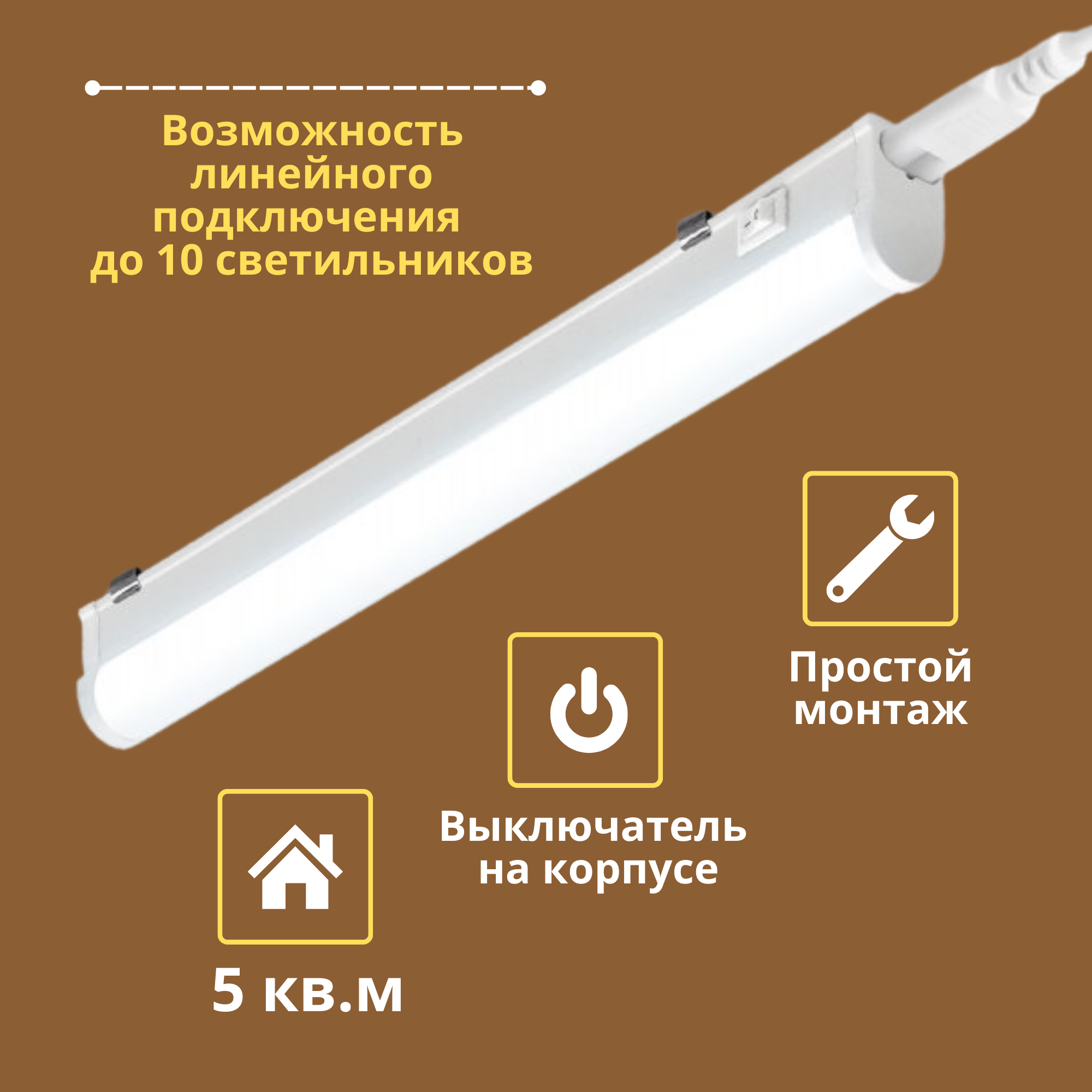 Светильник линейный светодиодный 10Вт, 220В, 6500К, с сетевым проводом СПБ-Т5 IN HOME холодный белый интересное: