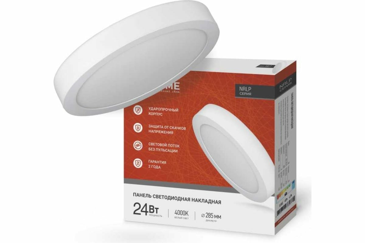Купить IN HOME Светильник светодиодный круглый накладной NRLP 24Вт 230В 4000К 1680лм 285мм IP40 бел. панель 4690612038537