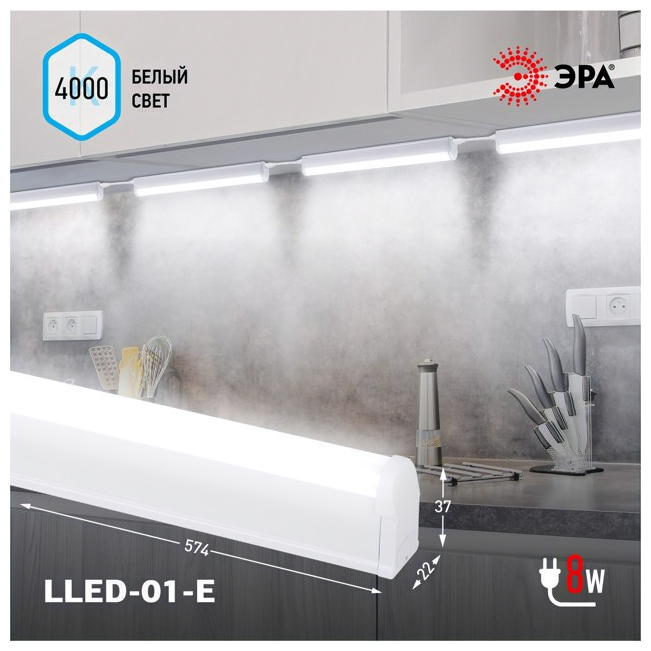 Светильник светодиодный LLED-01-08W-4000-E 8Вт 4000К L572мм линейный Эра Б0052720