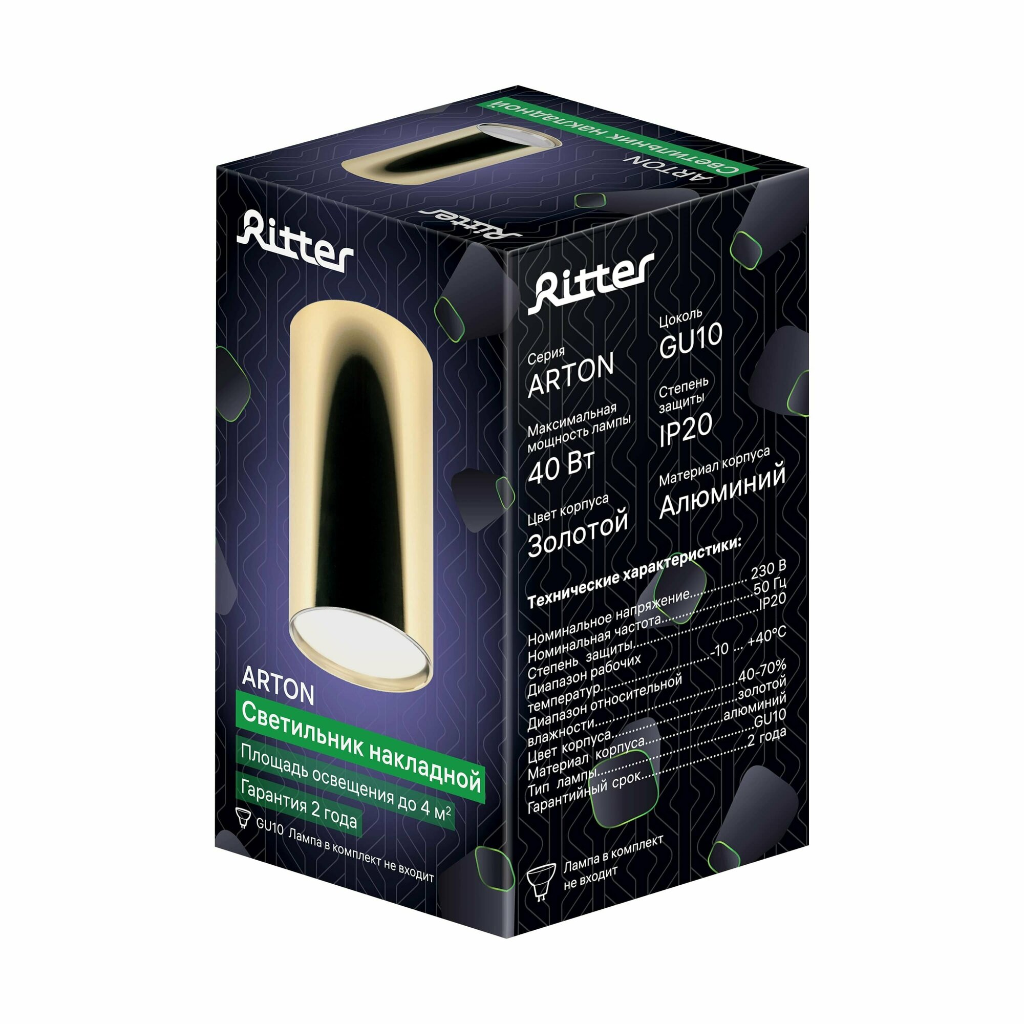 Купить Светильник накладной Arton, цилиндр, 55х100мм, GU10, алюминий, золото, настенно-потолочный светильник для гостиной, кухни, спальни, Ritter, 59953 1