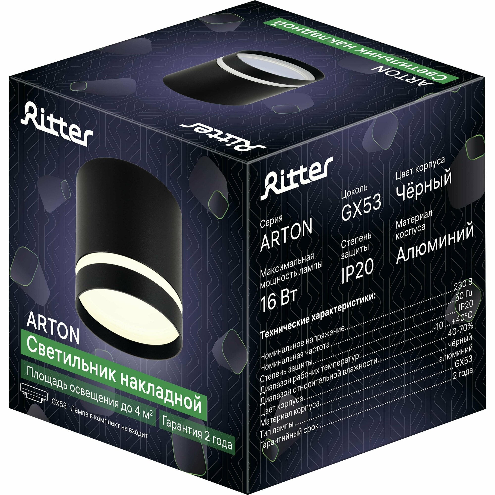 СохранитьСветильник накладной Arton, цилиндр, 85х80мм, GX53, алюминий, черный, настенно-потолочный светильник для гостиной, кухни, спальни, Ritter, 59943 2 интересное: