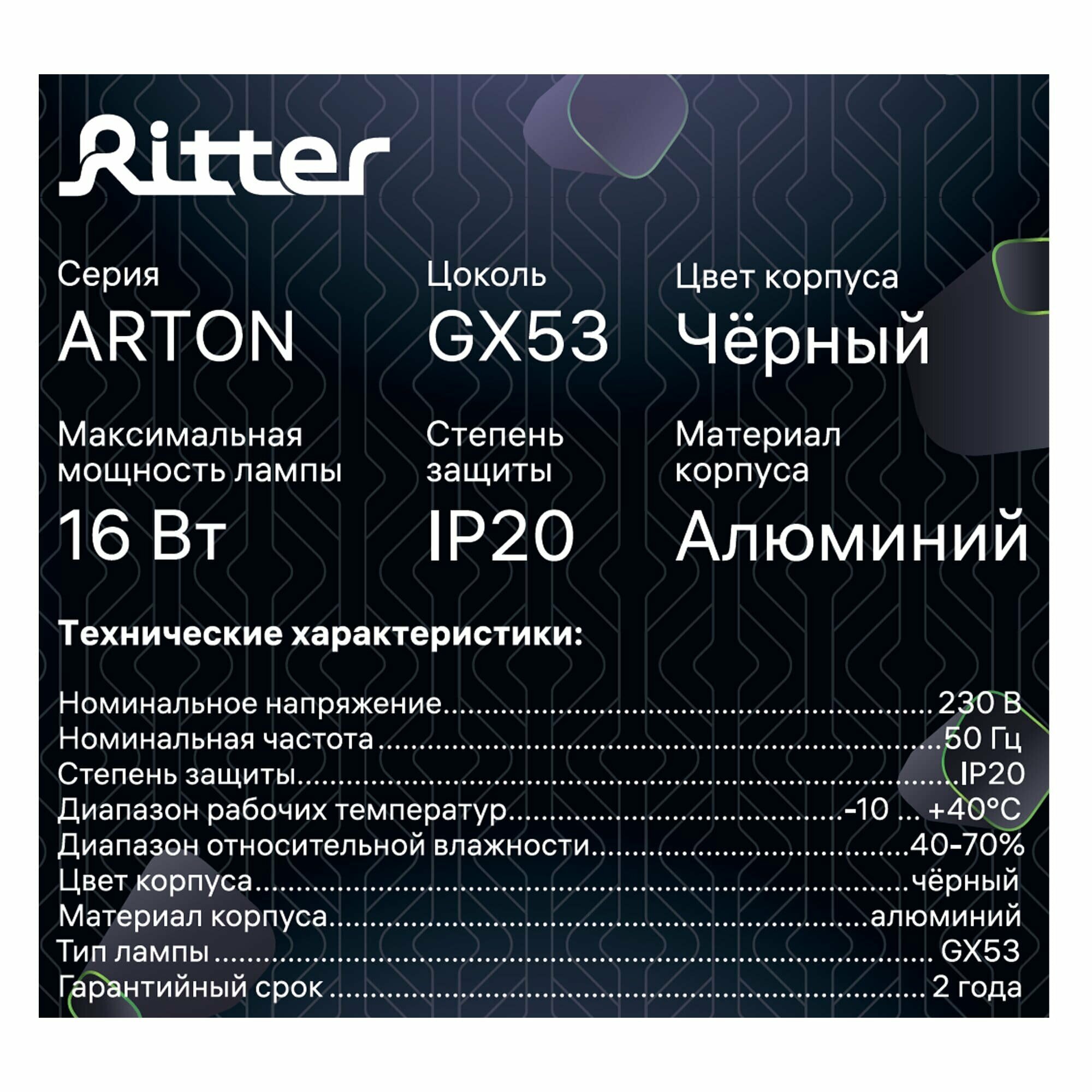 Светильник потолочный Ritter Arton GX53 16 Вт 4 кв. м черный IP20 (59943 2)