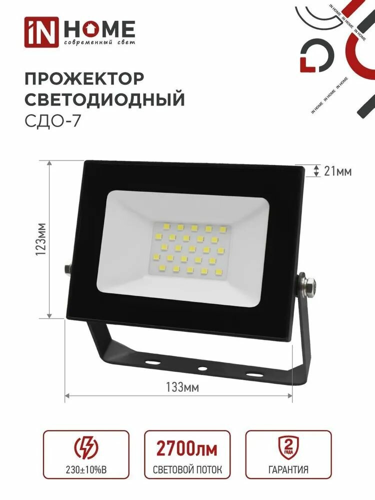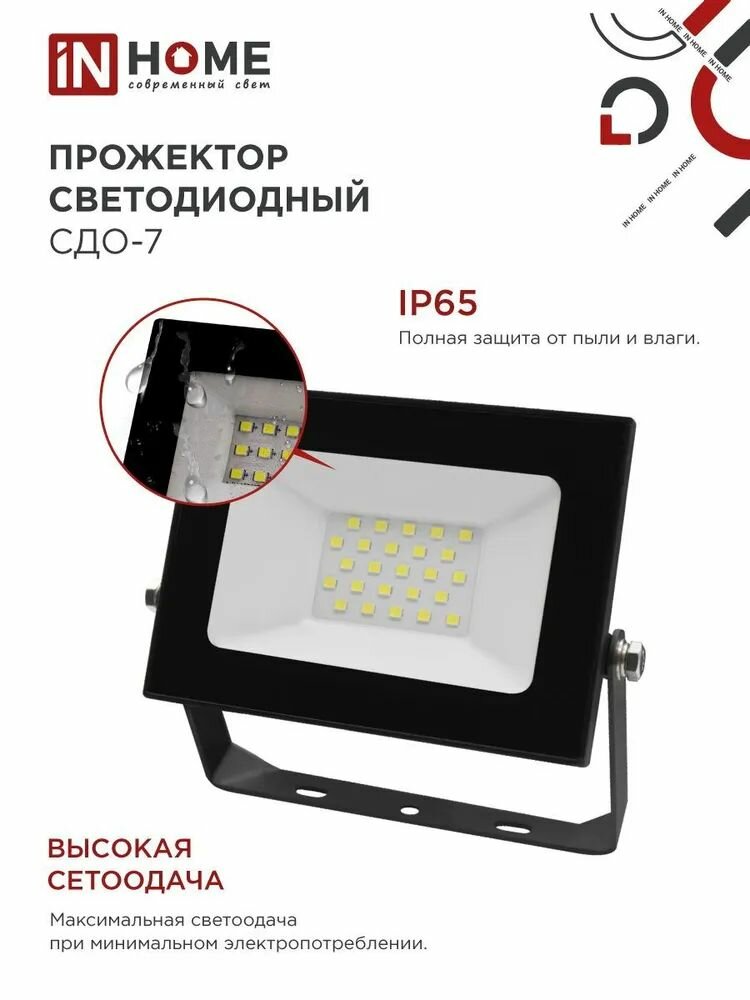Прожектор светодиодный IN HOME СДО-7, 30 Вт, 230 В, 6500 К, IP65, белый