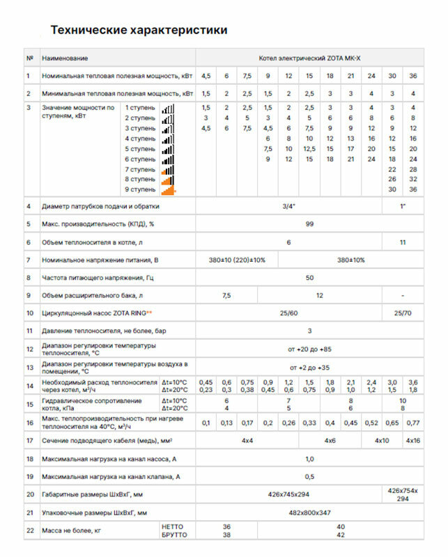 Котел электрический настенный ZOTA MK-X - 36 кВт (380В, 9 ступеней мощности, без расш.бака)