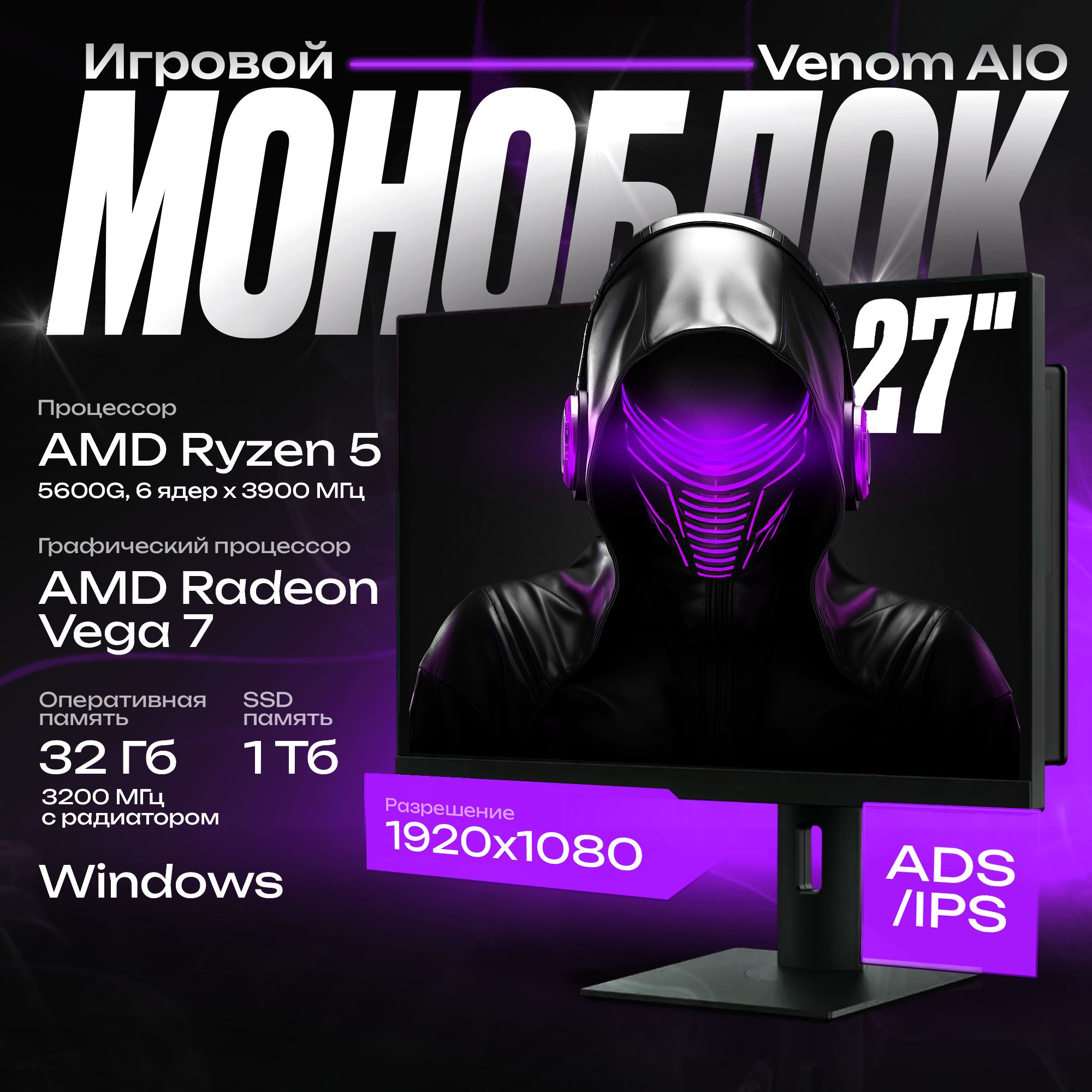 Купить Игровой Моноблок 27" Venom AIO Gaming Ryzen 5 5600G/32GB (2x16gb) 3200MHz/SSD 1TB/Win 11