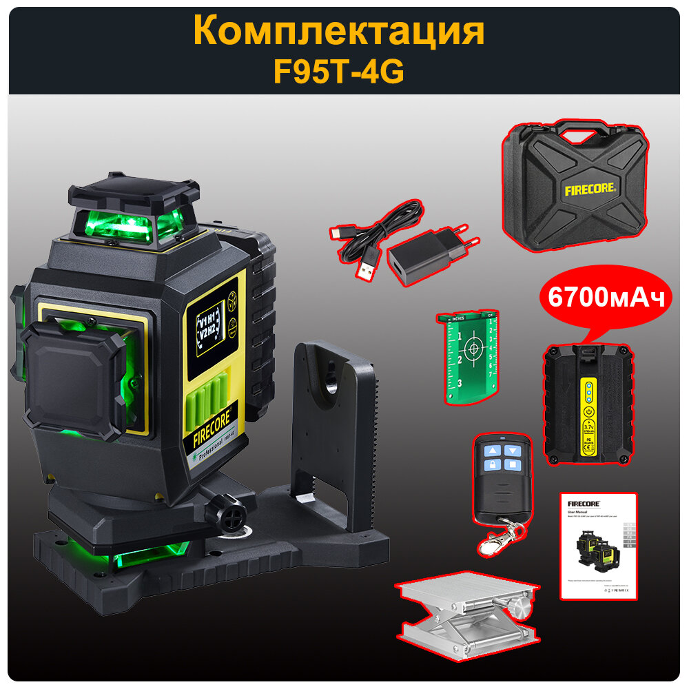Лазерный уровень/нивелир FIRECORE F95T-4G 16 Линий,Зеленый луч,чемодан,с встроенным L-образным магнитным кронштейном