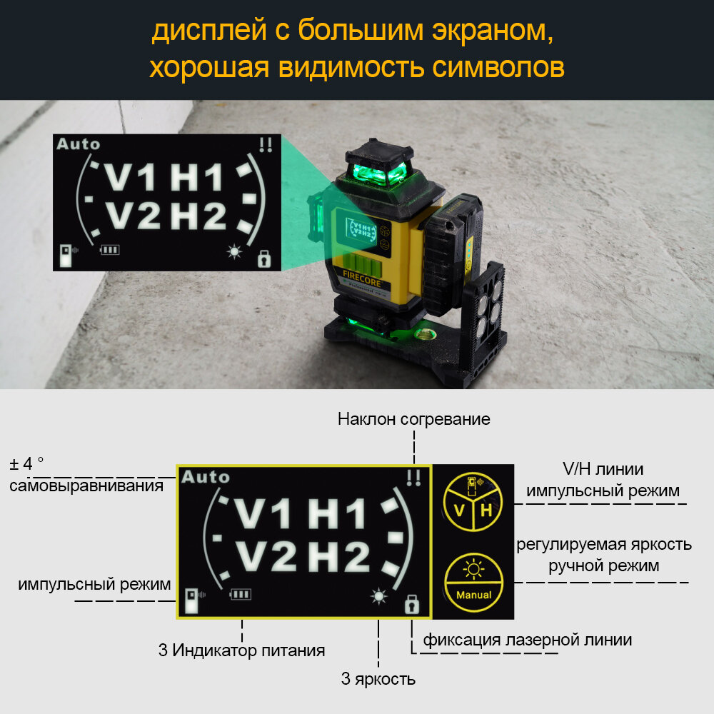 СохранитьЛазерный уровень/нивелир FIRECORE F95T-4G 16 Линий,Зеленый луч,чемодан,с встроенным L-образным магнитным кронштейном, с штатив 1 м интересное: