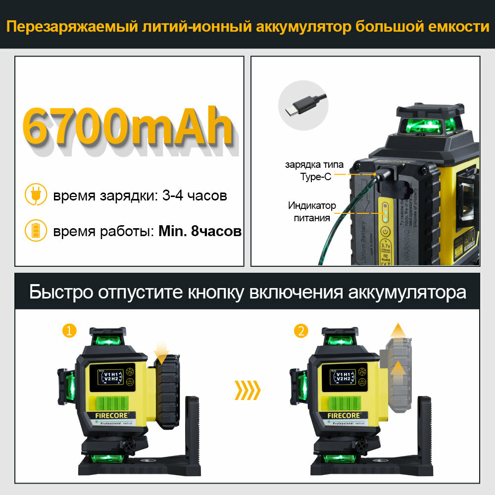 Аккумулятор для лазерного уровня Для FIRECORE F95T-XG/F95T-3G/F95T-4G, перезаряжаемый 6700mAh