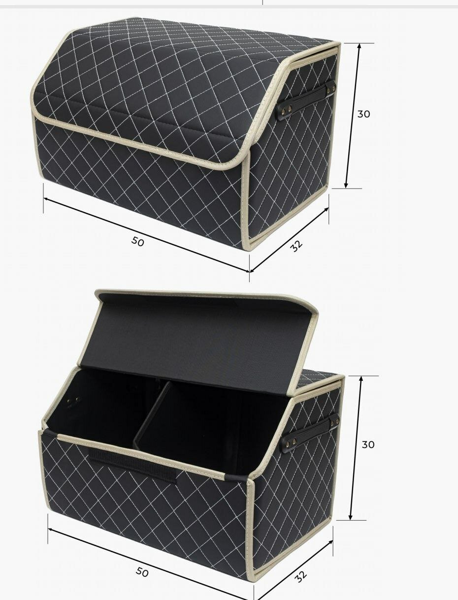Аксессуары для авто/ Органайзер в багажник 80*30*35см, фигурный ромб черный строчка бежевая