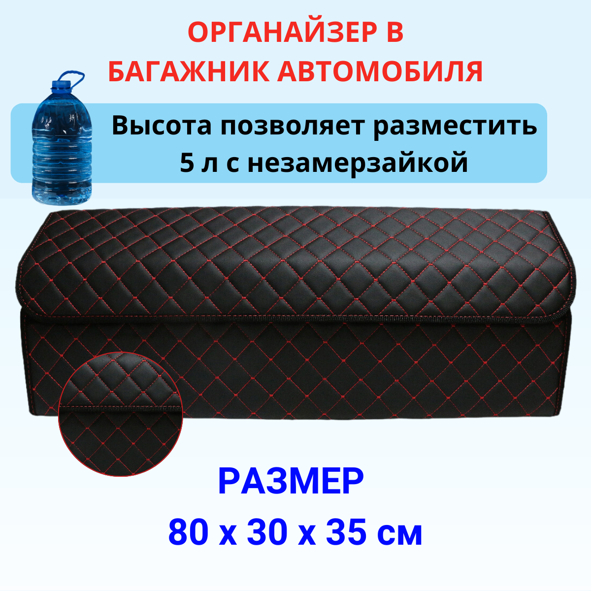 Аксессуары для авто/Органайзер в багажник для машины 80*30*35см квадрат черный строчка красная/черн